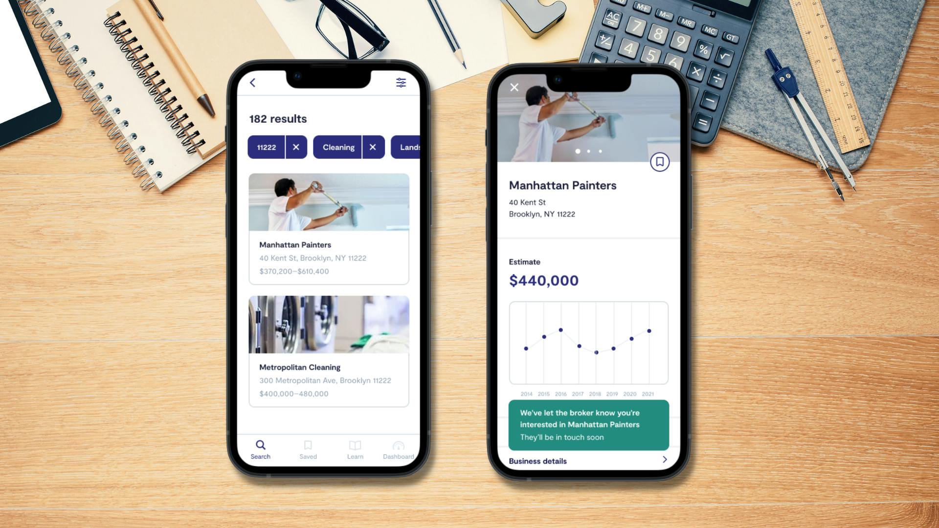 On the core product, transparency and clarity of ownership were key. The Baton team focused on business valuation service, notifications service, behavioral data stack, backend, and API work. The thoughtbot team took the lead on the front-end experiences, looking at business owner onboarding flow, search filters for business profiles, and a custom API to generate business profiles on the fly.