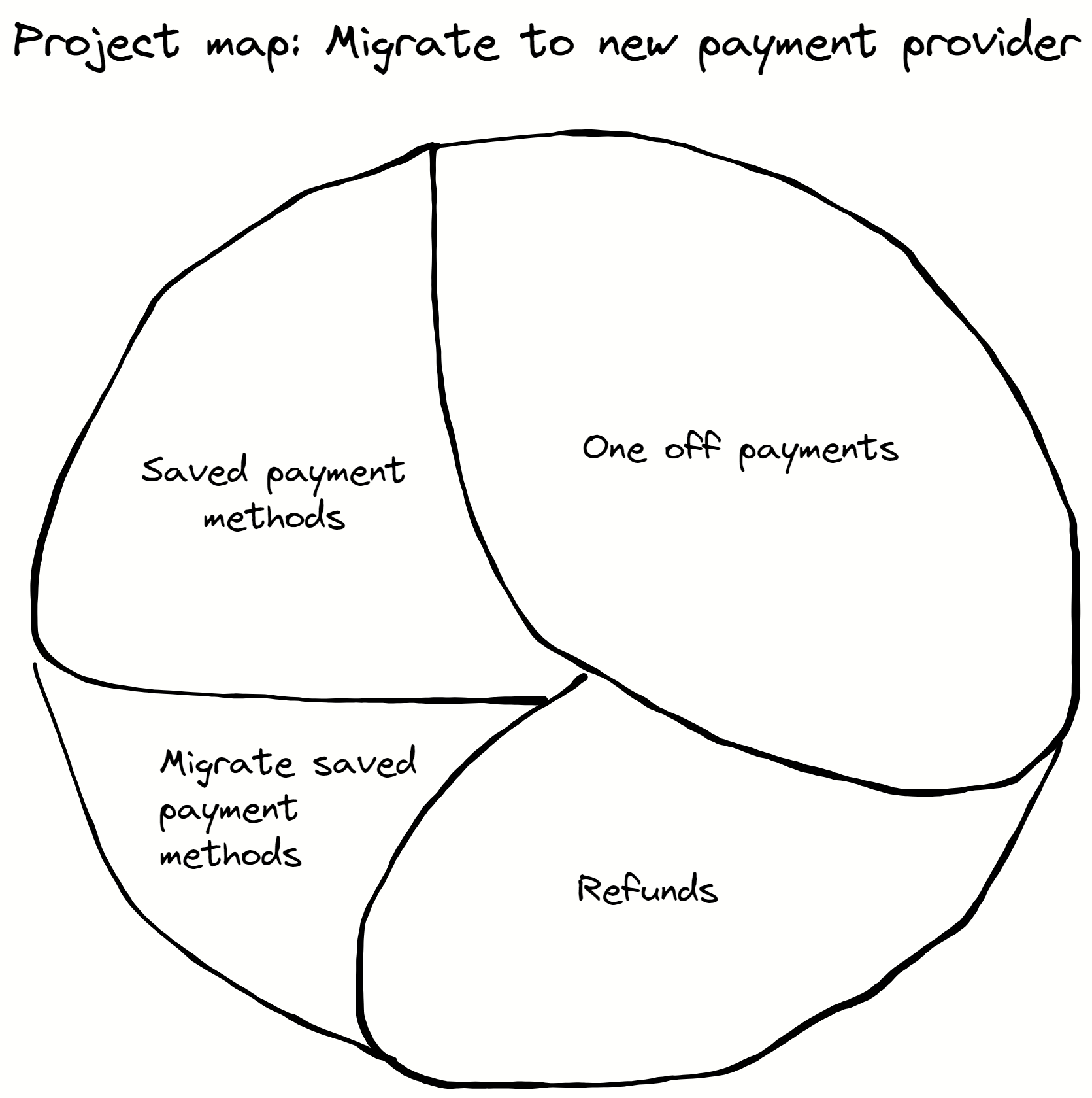 🍔 Let’s take a look at an example. Our delectable side-business, thoughtburgers (home to the tastiest and most thought-provoking burgers!), needs to change their payment provider because their current one is having too much downtime. They spin up a project team and start planning out the work: